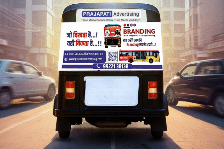 What Is Auto Rickshaw Branding? Auto rickshaw branding—also known as auto advertising, auto branding, or auto rickshaw ads—is the practice of placing creative advertisements on or inside auto rickshaws. Common formats include: These moving billboards travel across busy streets, markets,… Read More »Auto Rickshaw Advertising in India: The Most Affordable & High-Impact Branding Strategy